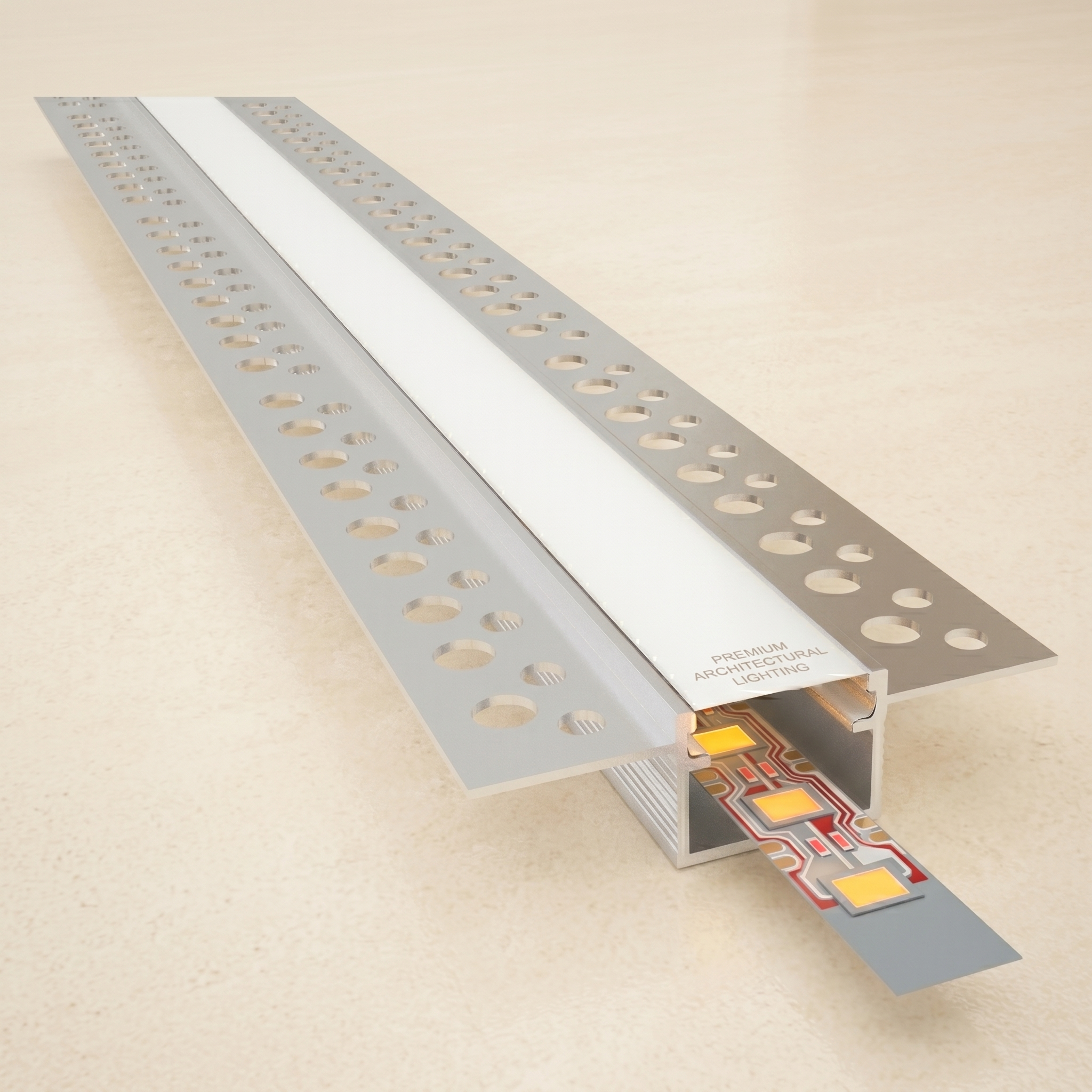 Trimless led profil, sıva altına gömülen ve çerçeve görünümünü minimuma indirerek yüzeyde daha temiz bir ışık çizgisi oluşturan lineer aydınlatma çözümüdür.